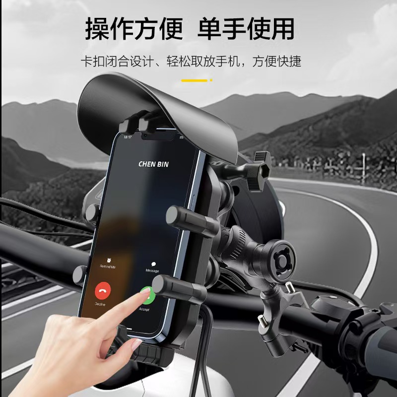 减震防盗防雨遮阳电动车摩托车手机支架360度旋转 充电可选